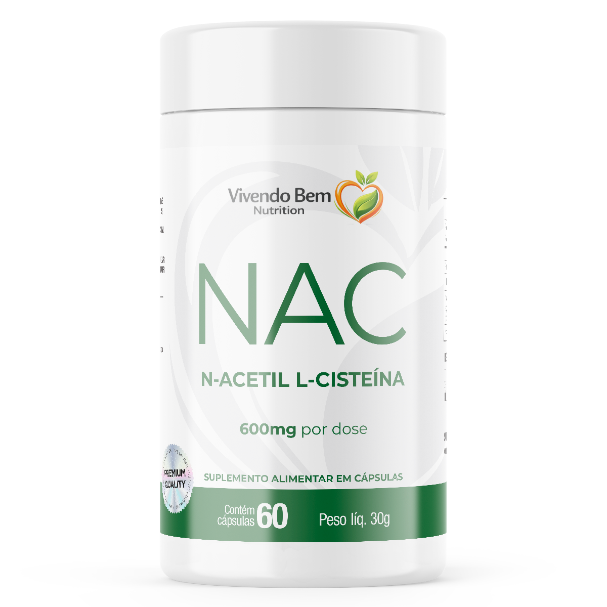 Nac 600mg N-acetil L-cisteína 60 Cápsulas Vivendo Bem